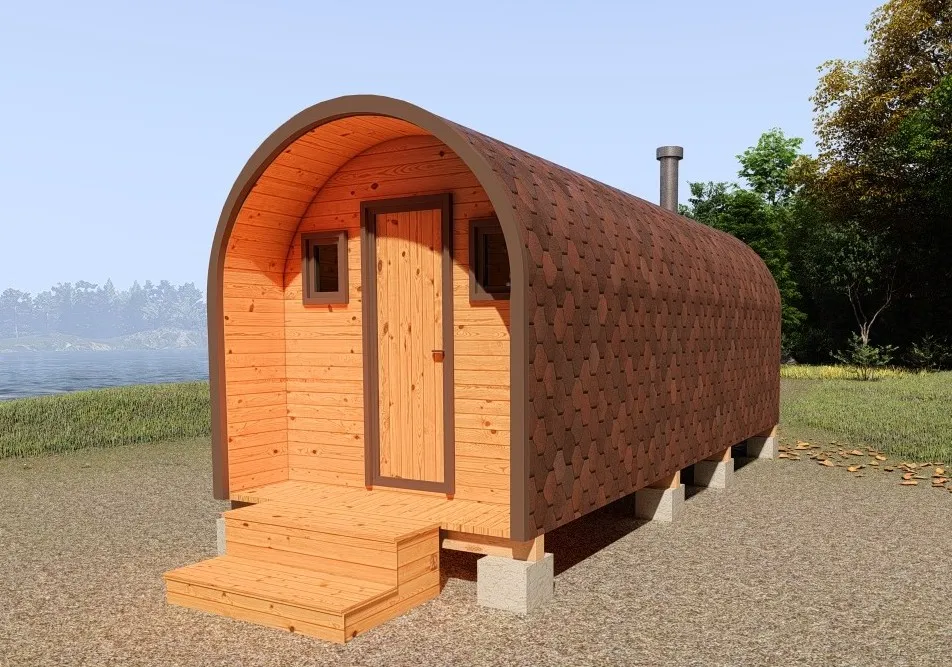 Симбиоз круглой и квадратной бани-бочки. Разработано с учётом эргономики, в ней так же просторно, как и в квадро-бочке, но при этом полукруглая крыша не дает задерживаться снегу и влаге на кровле. А еще такая баня безусловно красивая, мобильная и доступная каждому!