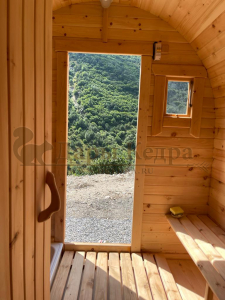 Баня-бочка буханка из кедра с козырьком (все размеры)