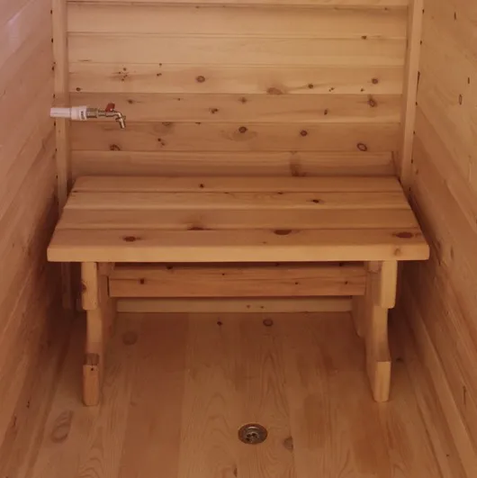- Круглая баня-бочка 5,5 метров - раздевалка, парилка, моечная.