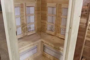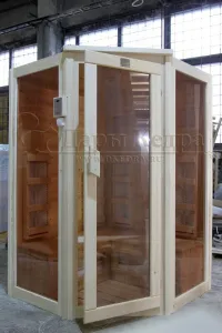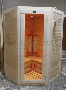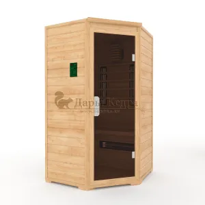Это специально оборудованная кедровая кабина для прогрева тела человека сухим теплом. Воздух в таких парных не нагревается. Инфракрасные лучи воздействуют на тело, равномерно прогревая мышцы, суставы и органы. Керамические излучатели похожи на лампы, имеют высокую температуру нагрева, поэтому защищены противоожоговыми решетками. Тело человека в таких саунах нагревается интенсивнее. Работает кабина за счет электричества. Установка сауны в угол, позволяет рационально использовать пространство помещения. Подходит как для домашнего использования, так и для коммерции.