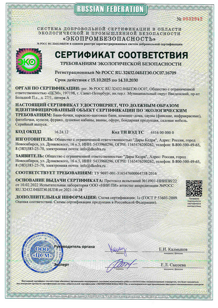 Заказали в Дарах Кедра фитобочку. Долго советовался с женой и менеджерами. Решили остановиться на этой модели. Шикарная бочка, что сказать, парит отлично! Рекомендую для крупных людей, как я. Спасибо за качественную продукцию, я доволен!