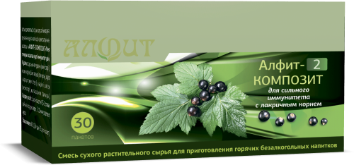Травы, входящие в сбор «Алфит-2 Композит», мягко повышают иммунную защиту, обладают общеукрепляющим действием. Плоды смородины повышают витаминную ценность напитка и улучшают вкус. Рекомендуется как средство дополнительной помощи в борьбе с болезнями, стрессами и усталостью. Дополнен мощным иммунноукрепляющим компонентом - солодкой.