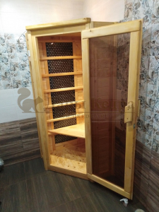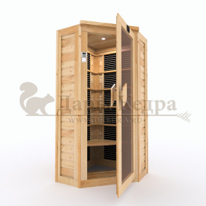 Это специально оборудованная кедровая кабина для прогрева тела человека сухим теплом. Воздух в таких парных не нагревается. Инфракрасные лучи воздействуют на тело, равномерно прогревая мышцы, суставы и органы. Карбоновые излучатели, встроенные в стены кабины, обладают мягким прогревом, что полностью исключает возможность ожога. Работает кабина за счет электричества. Установка сауны в угол, позволяет рационально использовать пространство помещения. Подходит как для домашнего использования, так и для коммерции.