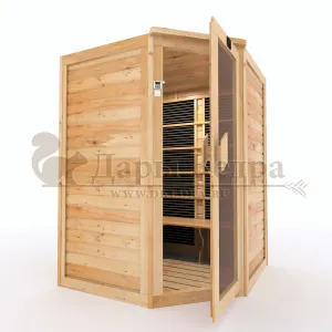 Это специально оборудованная кедровая кабина для прогрева тела человека сухим теплом. Воздух в таких парных не нагревается. Инфракрасные лучи воздействуют на тело, равномерно прогревая мышцы, суставы и органы. Карбоновые излучатели, встроенные в стены кабины, обладают мягким прогревом, что полностью исключает возможность ожога. Работает кабина за счет электричества. Установка сауны в угол, позволяет рационально использовать пространство помещения. Подходит как для домашнего использования, так и для коммерции.