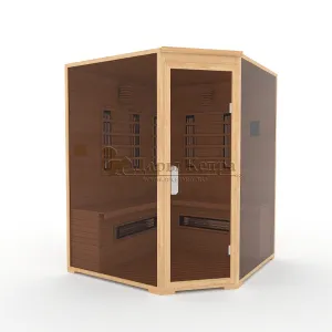 Это специально оборудованная кедровая кабина для прогрева тела человека сухим теплом. Воздух в таких парных не нагревается. Инфракрасные лучи воздействуют на тело, равномерно прогревая мышцы, суставы и органы. Керамические излучатели похожи на лампы, имеют высокую температуру нагрева, поэтому защищены противоожоговыми решетками. Тело человека в таких саунах нагревается интенсивнее. Работает кабина за счет электричества. Установка сауны в угол, позволяет рационально использовать пространство помещения. Подходит как для домашнего использования, так и для коммерции.