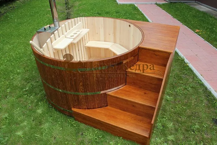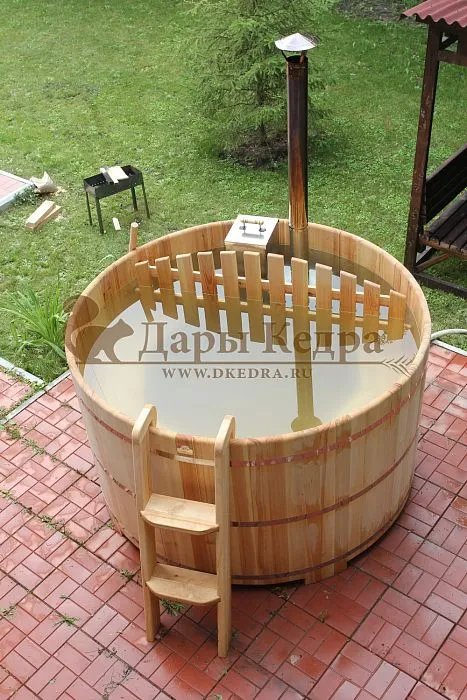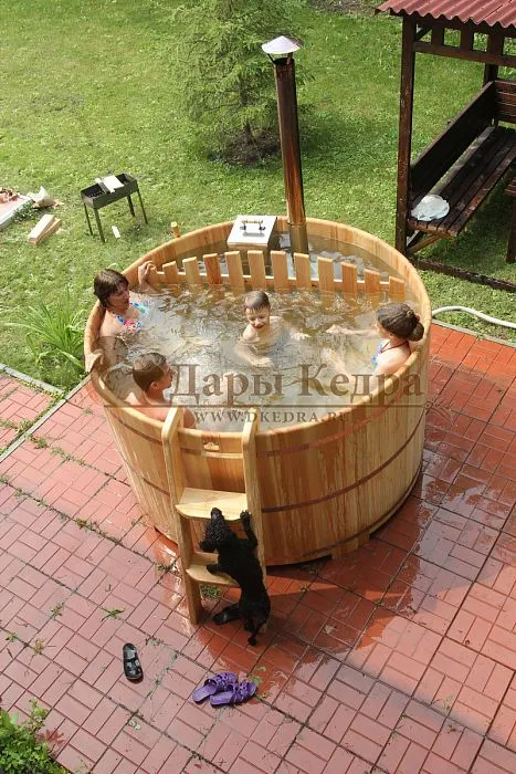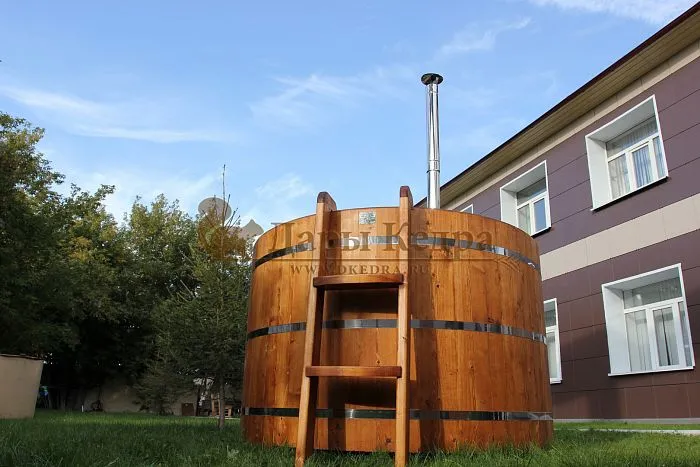 Купель из алтайского кедра укрепляет здоровье, повышает иммунитет благодаря фитонцидам, которые выделяются в воду и воздух. Неповторимый кедровый аромат вы будете ощущать на протяжении всей банной процедуры. Кедр — дерево твердой породы, не боится влаги, жучков, оно очень прочное, а значит устойчивое к условиям внешней агрессивной среды. Купель с дровяной печью подойдёт для дома и дачи. На открытом воздухе в любую погоду (даже зимой) она сохранит температуру воды теплой, комфортной для процедур благодаря дровяной печи.