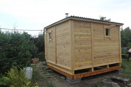 Заказывали как летний домик с дополнительными окнами и расширенной верандой, получилось очень интересно. А вместо полков у нас были лежаки. Сами купили матрасы в размер. На первое время вообще было очень удобно, потом достроили дом, переехали туда, а этот переоборудовали в баню. Докупили печь в Дарах Кедра. Все просто т удобно.